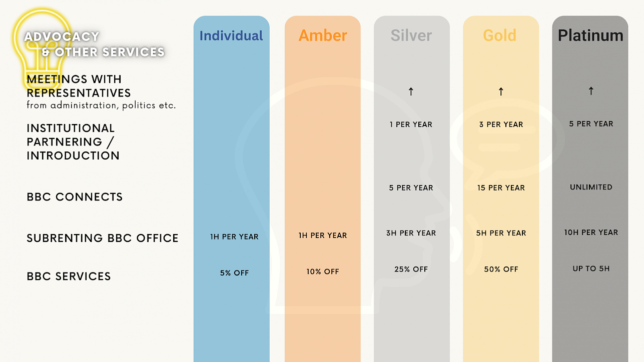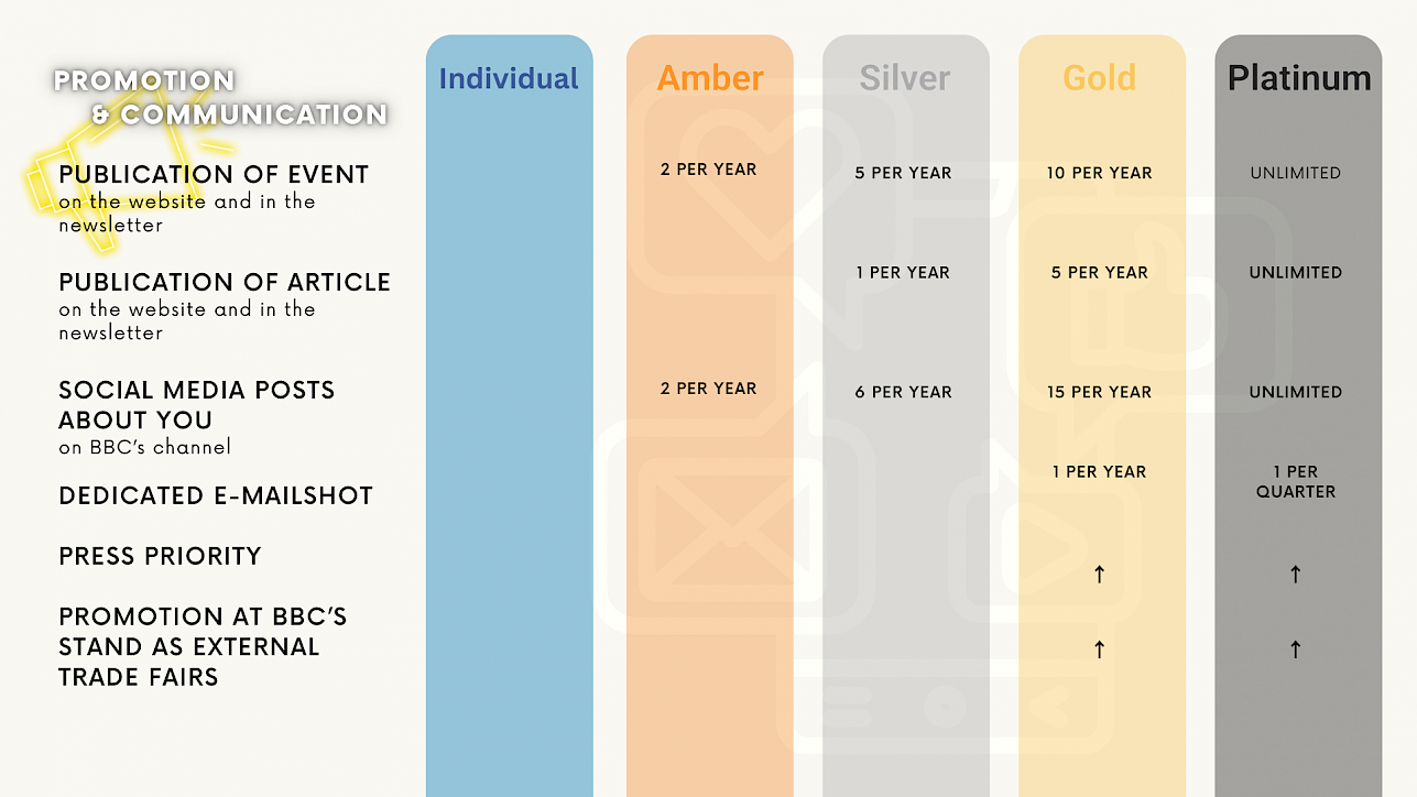 The BBC offers different memberships types depending on the form of your company. We have also a great membership offer for individuals.